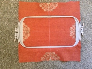 I’ve used chalk to create guide lines on the fabric so I can centre it in the hoop. It was easy to do because the pattern acted as a measure! Sometimes I’ll use pins to mark it out, you can iron it into quarters and use the creases but you need to know it will iron out again. You can also buy marker pens that fade with time which are great. The ones that need washing out are a bit of a pain because you’ll have to wash the cover when you’ve finished the embroidery.